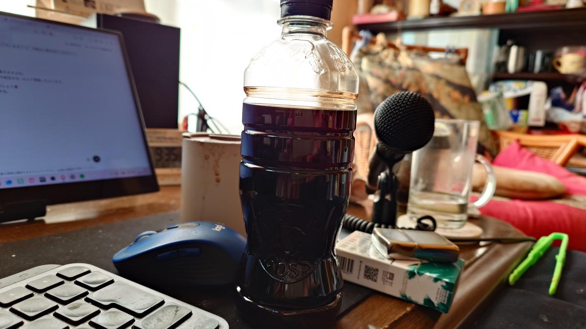 今日は、サントリーボスのボトルコーヒーを飲んでます。